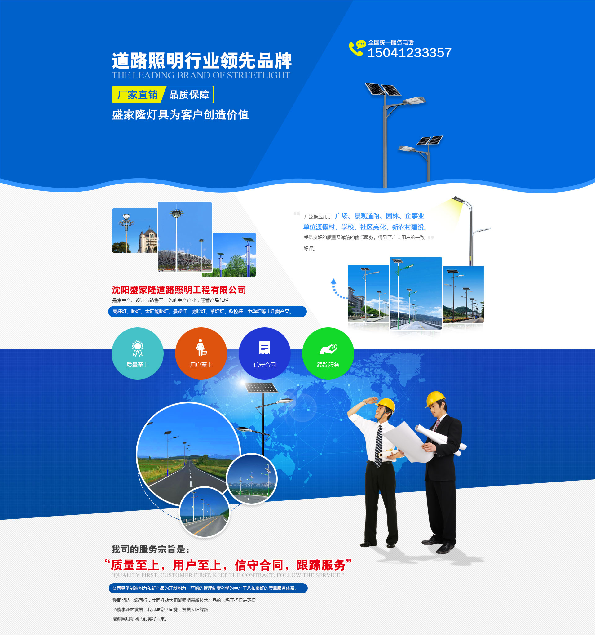 沈陽盛家隆道路照明工程有限公司坐落于沈陽市于洪區(qū)興盛村愛國,生產(chǎn)各種室外,道路,廣場,車站,碼頭,橋梁,庭院及室內(nèi)工礦照明燈具,品種有太陽能路燈,道路燈,LED路燈,組合燈,景觀燈,庭院燈,草坪燈,彩色泛光燈,中高桿燈以及配套使用的各種路燈頭,鎮(zhèn)流器,觸發(fā)器開關(guān)箱等系列產(chǎn)品。